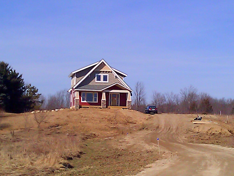 View of the house from the end of the driveway. It will look so much better when the grass and wildflowers start growing back. Right now its looking pretty barren.
